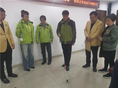 海淀区盲人协会主席主席张志锋体验捐赠盲杖